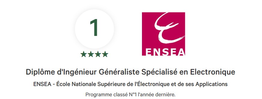 C'est la deuxième année consécutive que l'ENSEA décroche la première place de ce classement !