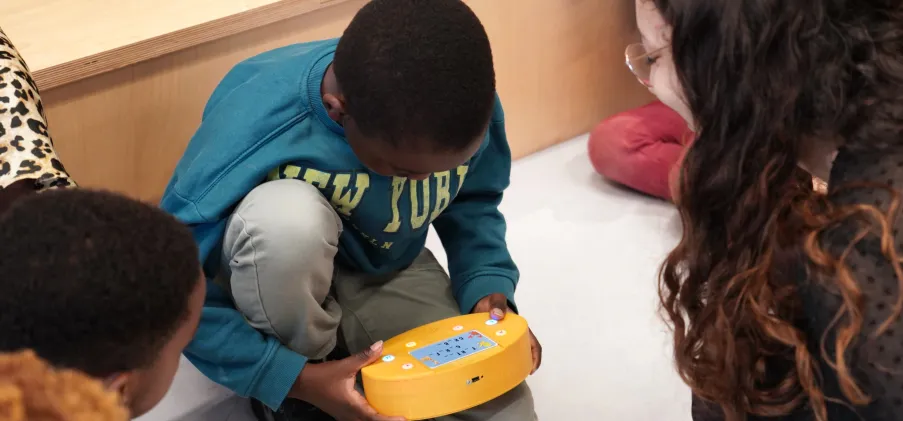 Parmi les projets sélectionnés, la console d'apprentissage des voyelles et la mystérieuse balle bleue ont été retenues pour leur potentiel innovant en matière d’objets de médiation pouvant être utilisés par les enseignants et les enfants.