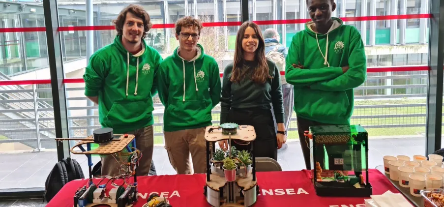 Mercredi 13 décembre dernier, ils ont pu présenter leurs avancées aux équipes d'équipe d’Elsys Design autour d’un buffet. L'occasion de faire le plein de retours et de conseils auprès d'experts, mais aussi de leurs pairs : les étudiants de l'ENSEA découvraient également le robot et ont pu discuter stratégie, composants, méca et impression 3D (grâce à laquelle le robot est réalisé) !