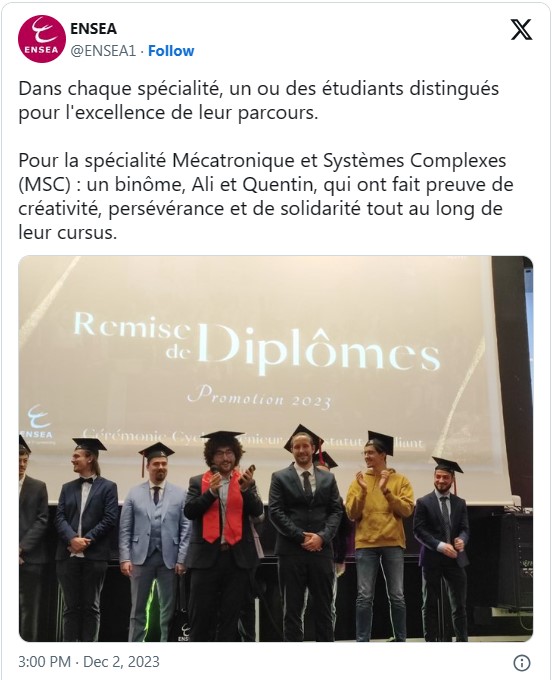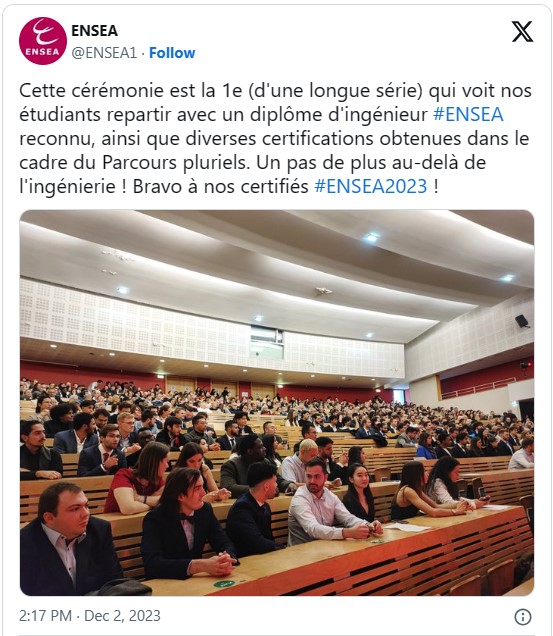 Félicitations à toutes et tous, nous sommes très fiers de vous accueillir dans la grande communauté ENSEA Alumni qui compte déjà plus de 8600 diplômés !