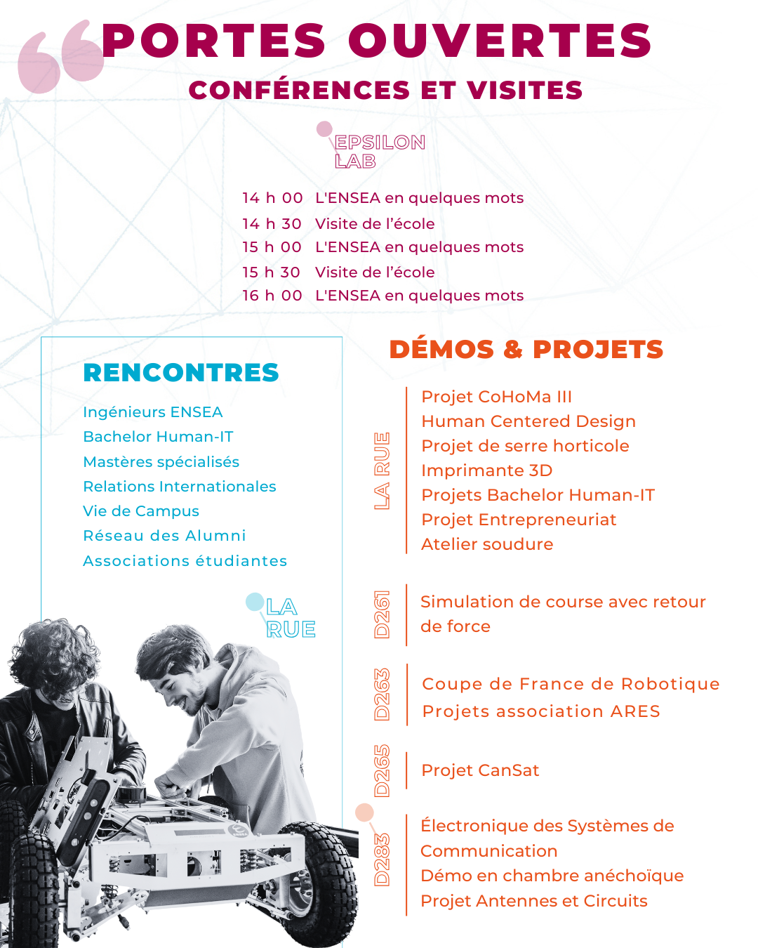 - Des micro-conférences pour présenter l’ENSEA, suivies de visites de l’établissement
