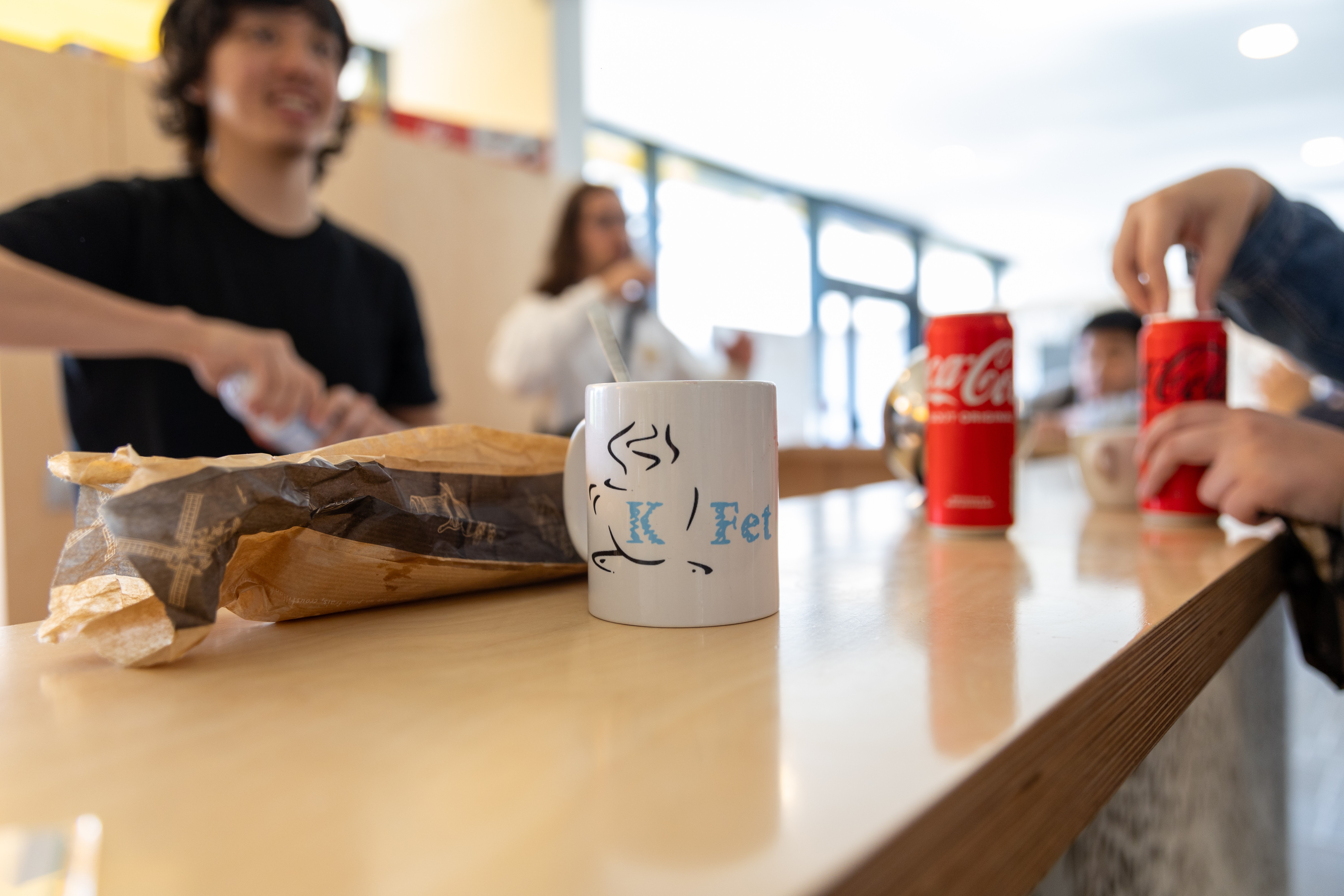 L'amphi de maths a du mal à passer ? Un petit creux au milieu du TP ? La Kfet est ouverte à toutes les pauses.